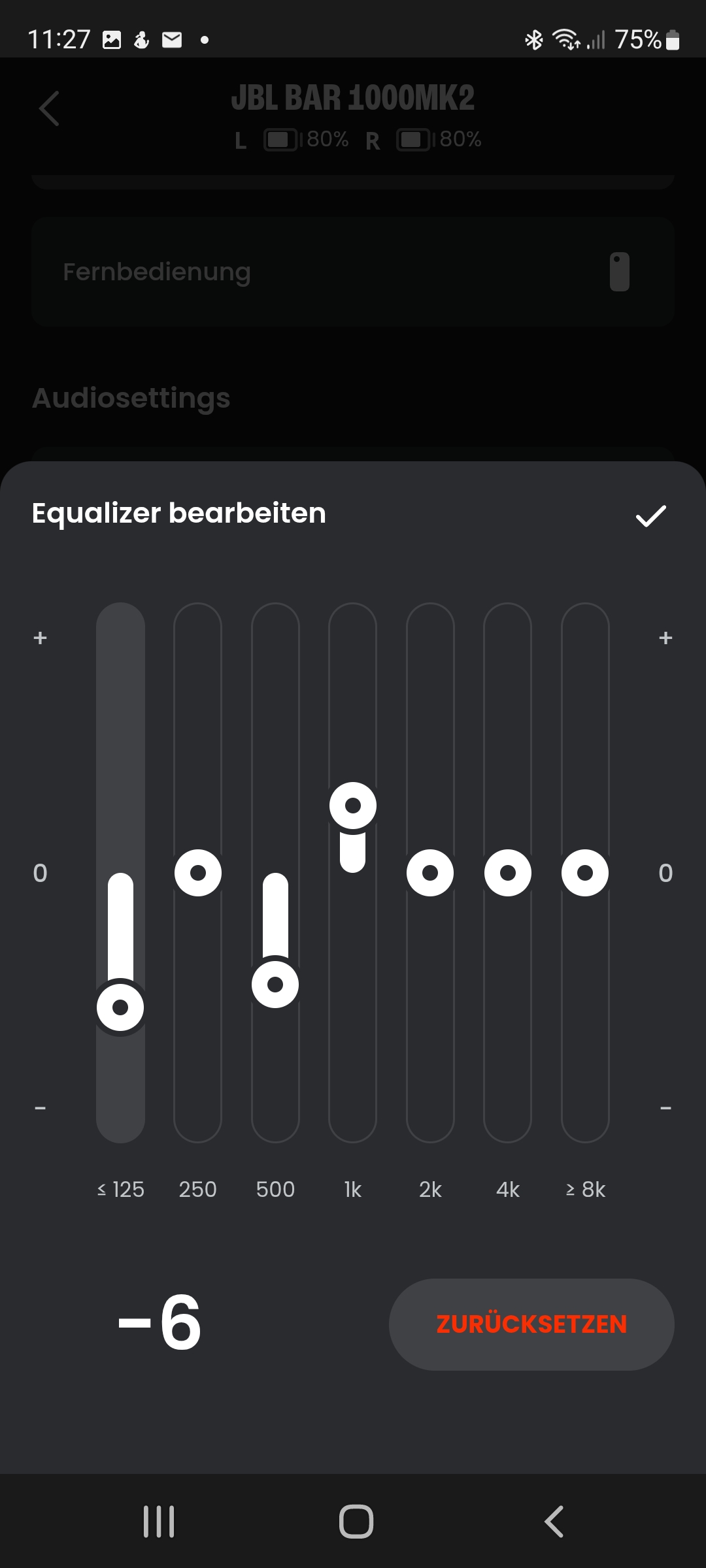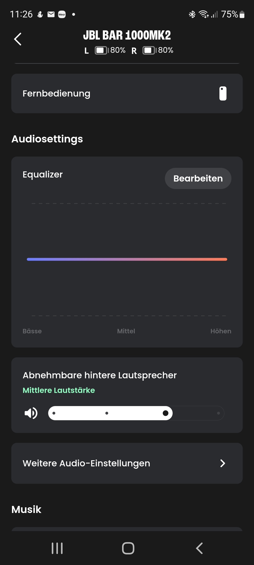 Die Stärken der JBL Bar 1000MK2 im Surround-Bereich können ihr bei feineren Musikstücken ein wenig zum Verhängnis werden. Wenn du ganz genau hinhörst, wirken die Höhen teilweise nicht ganz stimmig. Für die meisten Nutzer:innen aber absolut im Rahmen und bei vielen Musikgenres eh nicht so entscheidend. Für echten HiFi-Genuss solltest du ohnehin zu einem spezialisierten Musik-Setup greifen.
