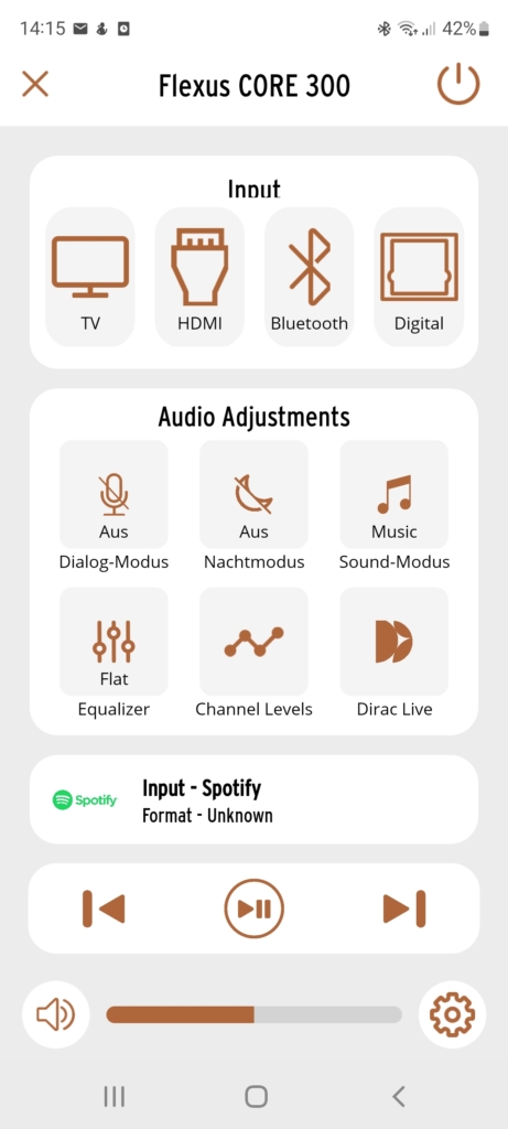 Beim Test der Flexus Core 200 hatten wir uns vor allem an den langen Reaktionszeiten und den fehlenden Streaming-Möglichkeiten gestört. Bei der Core 300 hat Klipsch zwar an der Geschwindigkeit gedreht – ganz ruckelfrei läuft die Bedienung per App aber noch immer nicht. Auch werden Texte teilweise abgeschnitten und können nicht vollständig gelesen werden.