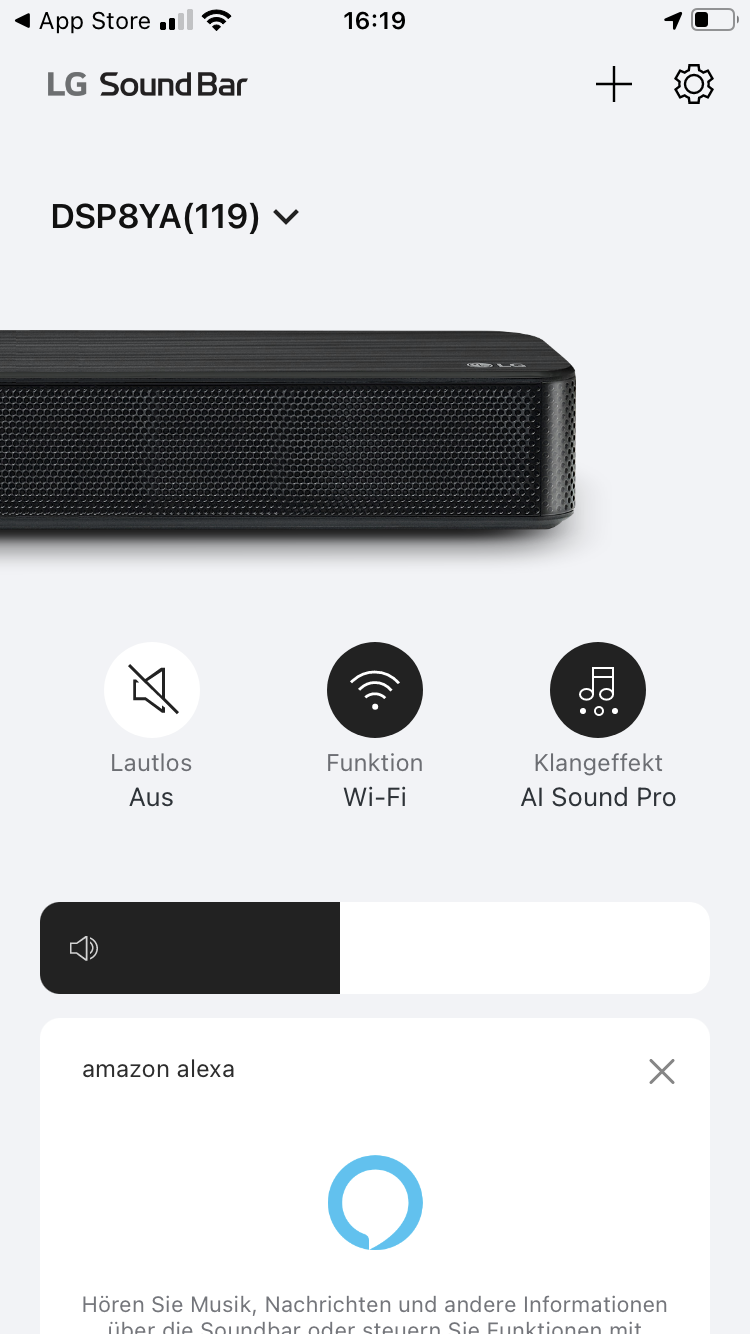 Zusätzlich kannst du die Soundbar auch mit Hilfe der App steuern und eine Vielzahl von Einstellungen tätigen. So beispielsweise die Klang-Anpassung einzelner Lautsprecher (Woofer-Pegel, Center-Level, Overhead-Lautstärke sowie – falls vorhanden – Rear Speaker) oder Höhen und Bässe.