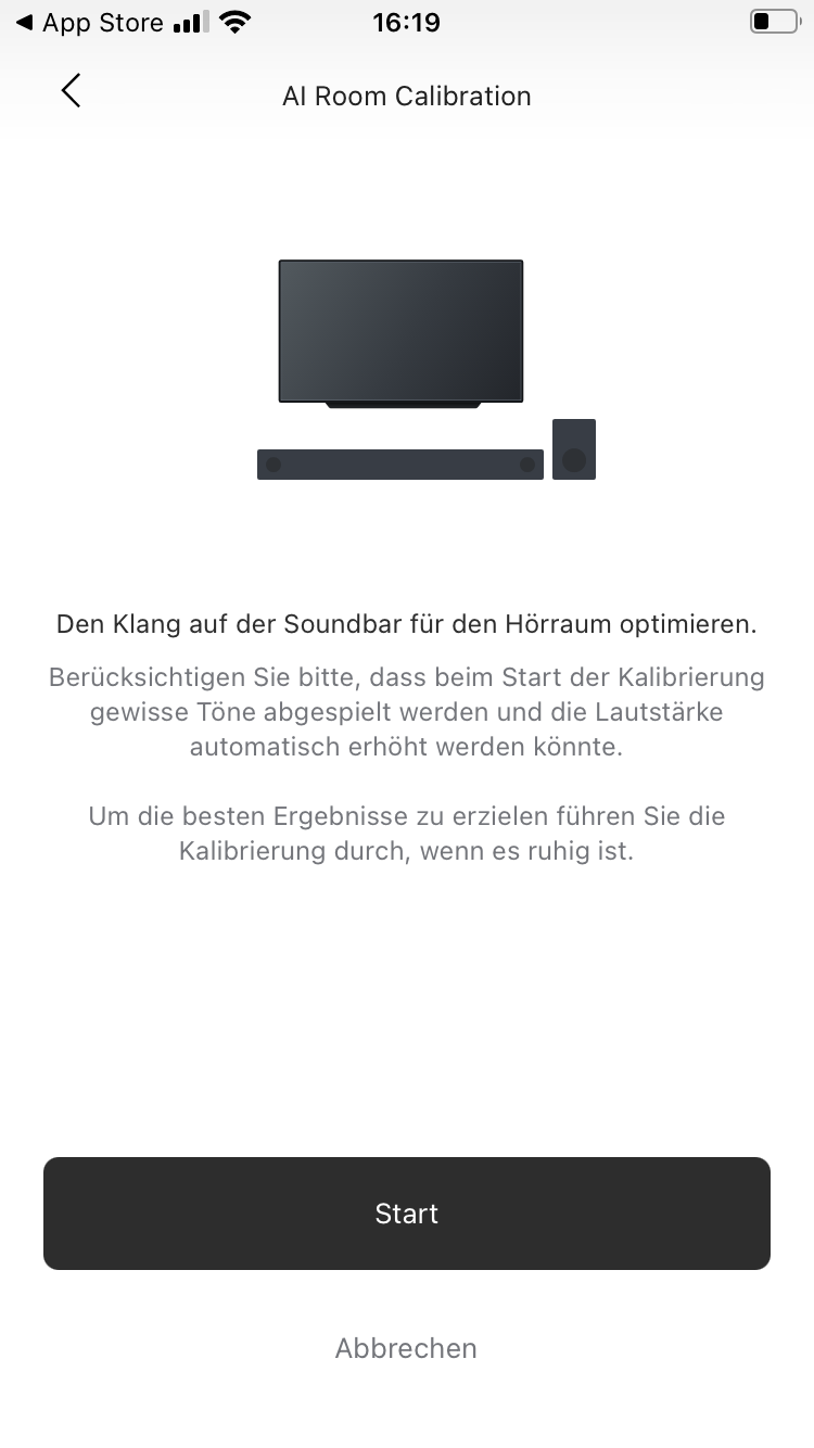 Zur Erstinbetriebnahme solltest du praktischerweise die zugehörige kostenfreie App namens LG Sound Bar zu Hilfe ziehen. Du findest sie sowohl im Google Play Store, als auch im App Store von Apple. Sie leitet nicht nur Schritt für Schritt durch den Verbindungsprozess mit dem Heimnetzwerk, sondern offeriert die Option zur automatischen Klanganpassung. Auch wenn wir in unserem Wohnzimmer nur wenige Unterschiede feststellen konnten – es gibt eine Vorher-Nachher-Funktion), dürfte sich das gerade für asymmetrische Wohnräume als nützlich erweisen.