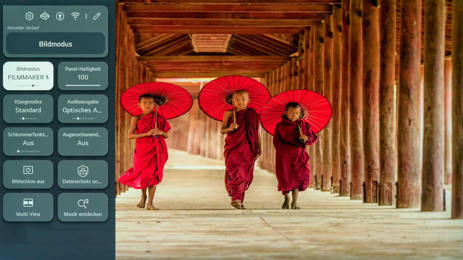 Um den LG QNED86 aufs ideale Bild vorzubereiten, wählen wir als Standard für alle weiteren Beschreibungen den Bildmodus Filmmaker. Du hast bei LG aber viel Auswahl, wenn es um den Bildmodus geht. Sogar die Option „Persönlicher Bildmodus“ steht zur Verfügung. Hier musst du anhand von verschiedenen Testbildern deine Favoriten auswählen, um einen für dich passenden Bildmodus zu erhalten.