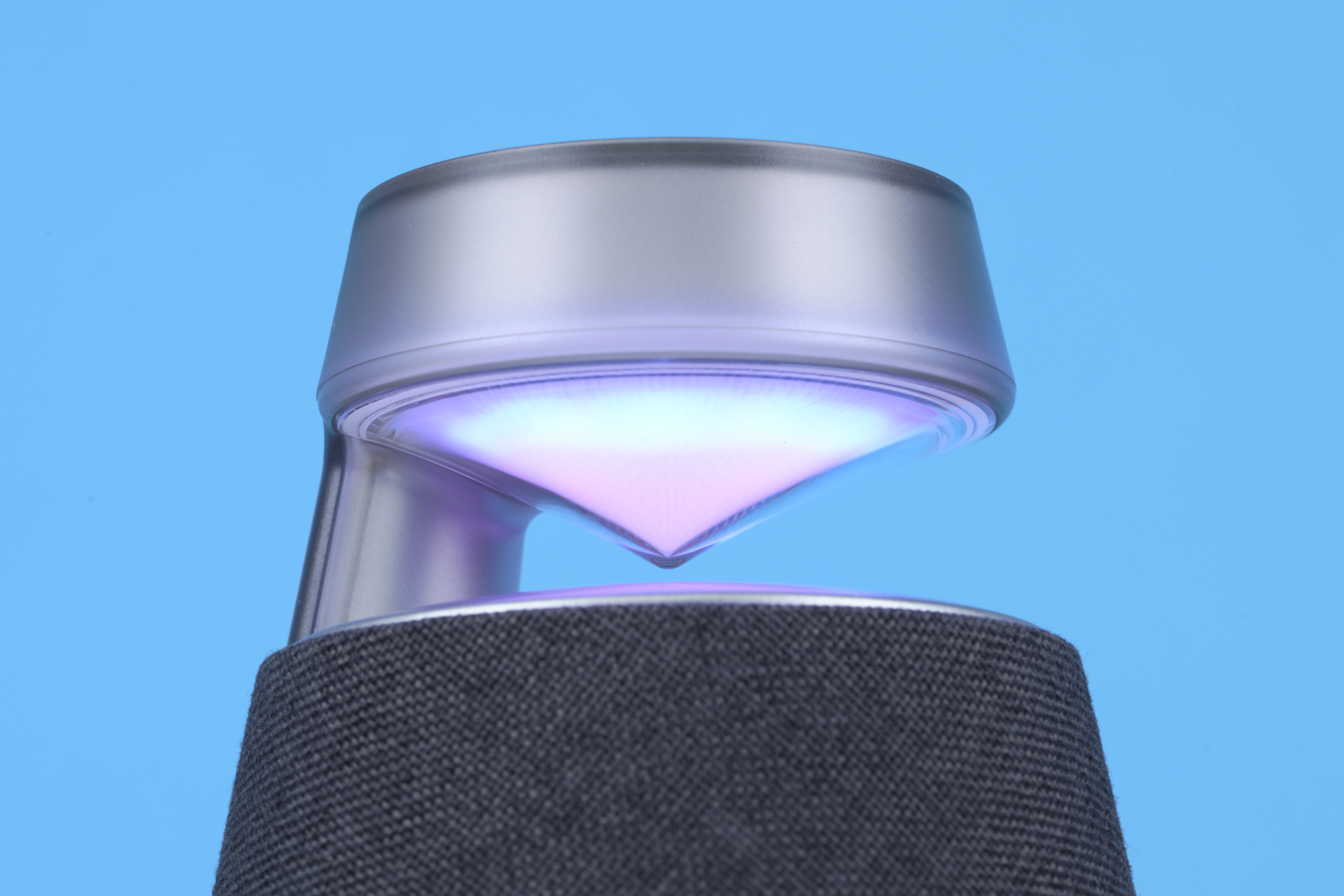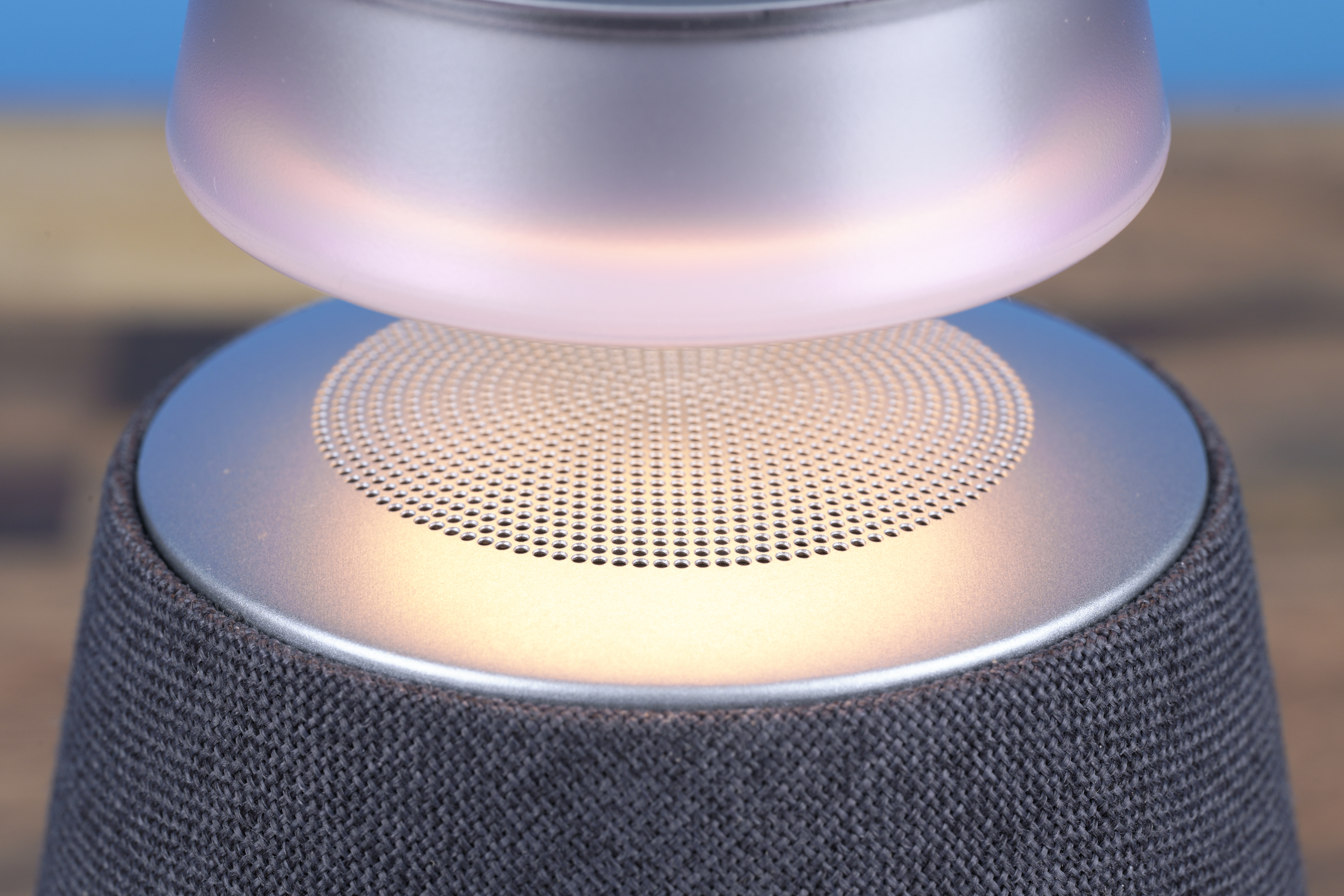 Die Konstruktion des Lampenkegels erinnert mit seinem einarmigen Design sehr stark an die Bang & Olufsen Beosound 2. Somit ist das Design nicht unbedingt sonderlich innovativ, aber bisher hat es kein Lautsprecher dieser Preiskategorie so harmonisch umgesetzt.