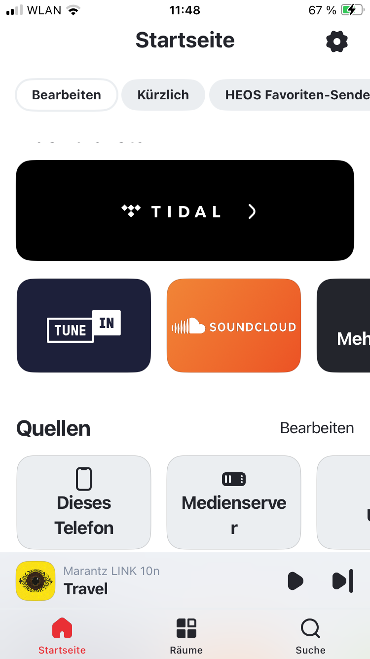 Streaming steuert die firmeneigene HEOS-Plattform bei, die sich auch in zahlreichen anderen Marantz- und Denon-Geräten wiederfindet. Das ist praktisch, weil man auf diesem Weg eine große Auswahl an potentiellen Mitspielern für ein hausumfassendes Multiroom-Musiksystem hat. Nach über zehn Jahren am Markt streamt HEOS auch sehr stabil und ist mit der eigenen App intuitiv bedienbar. HighRes-Inhalte laufen selbst in hoch exotischen Auflösungen, etwa DSD mit 256-facher CD-Abtastrate (11.2 MHz) oder PCM mit 352 kHz / 32 Bit. In der Praxis wichtiger ist aber, dass die beliebten Tidal-MAX-Streams in voller Auflösung verarbeitet werden.