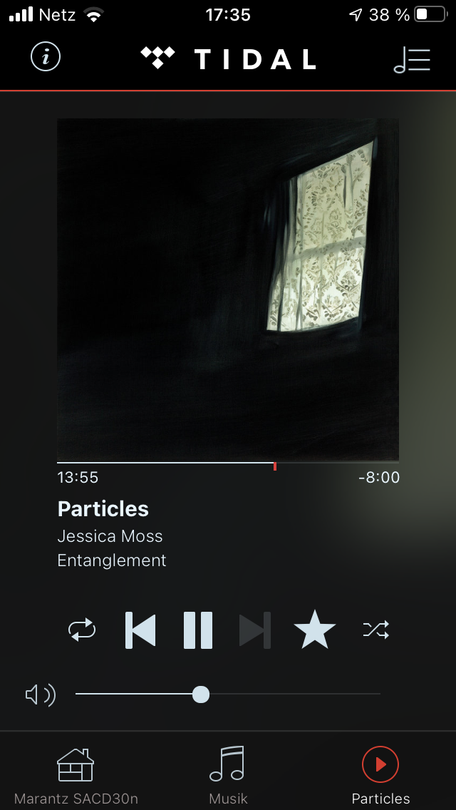 Auf Wake The Dead von Third Eye Foundation gibt’s dagegen wenig Natürlichkeit. Dafür träge Beats über einer ultratiefen Basslinie und ganz entfernt schaurige Sirenengesänge – eine mürrische Prozession in die musikalische Finsterwelt. Bei der man auch über den Marantz nicht eben Fröhlichkeit empfindet, aber zumindest das Gefühl hat, ganz vorne mitzulaufen. Wie sensibel der SACD 30n die feinsten Töne behandeln kann, wird auf dem filigranen 22-Minuten-Stück Particles von Jessica Moss deutlich (Album Entanglement, als FLAC-Stream über TIDAL). Da ertappt man sich beim Marantz dabei, wie man minutenlang gebannt einzelnen Violinensaiten hinterherhört: So perfekt geformt und beschrieben, dass fast die Zeit stehenbleibt.