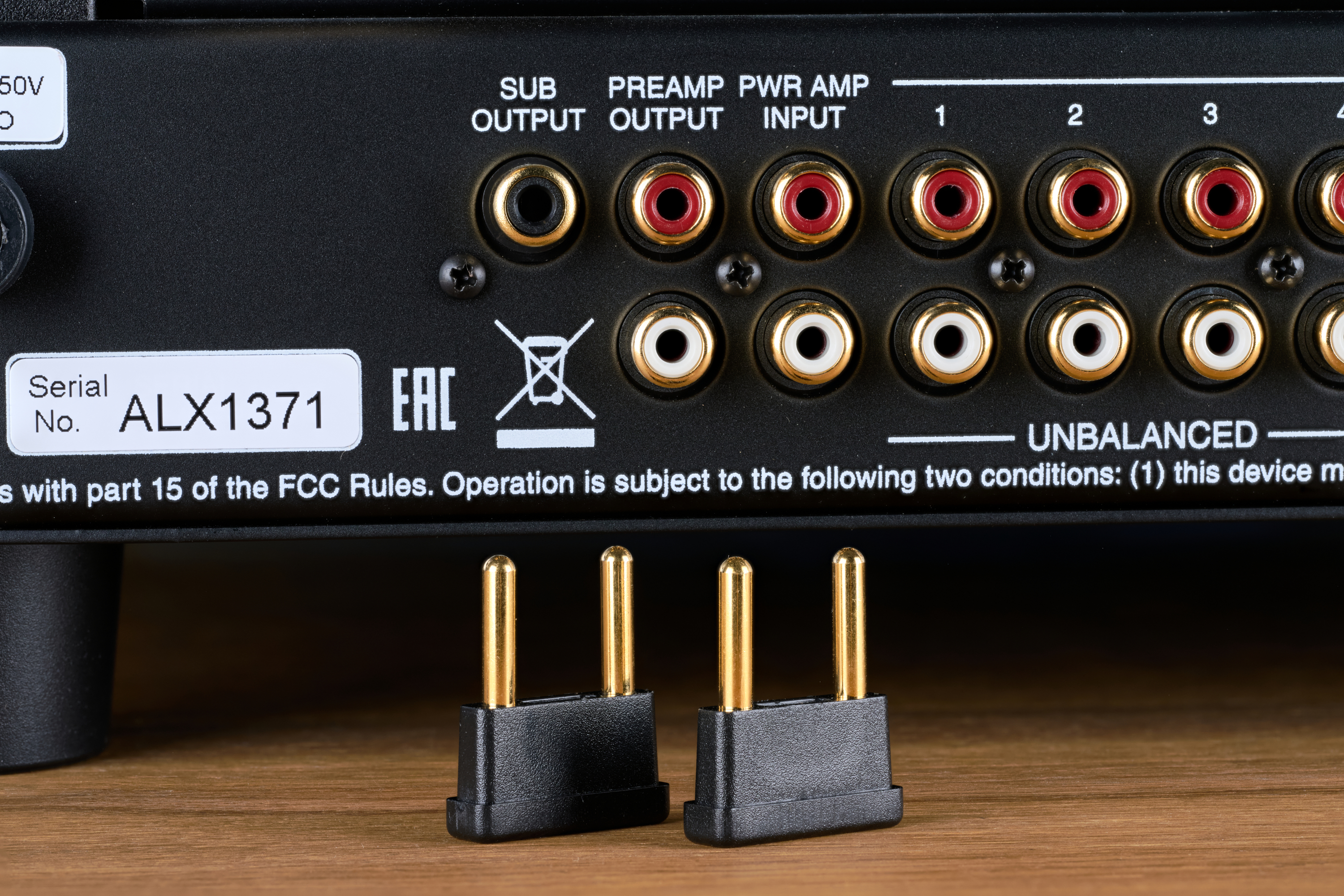 - 4x Cinch, 1x XLR, 1x Phono MM, 2x Digital Optisch, 2x Digital Koax, 1x USB-B (asynchron), 1x HDMI-ARC, 1x MCT, 1x Power Amp In
