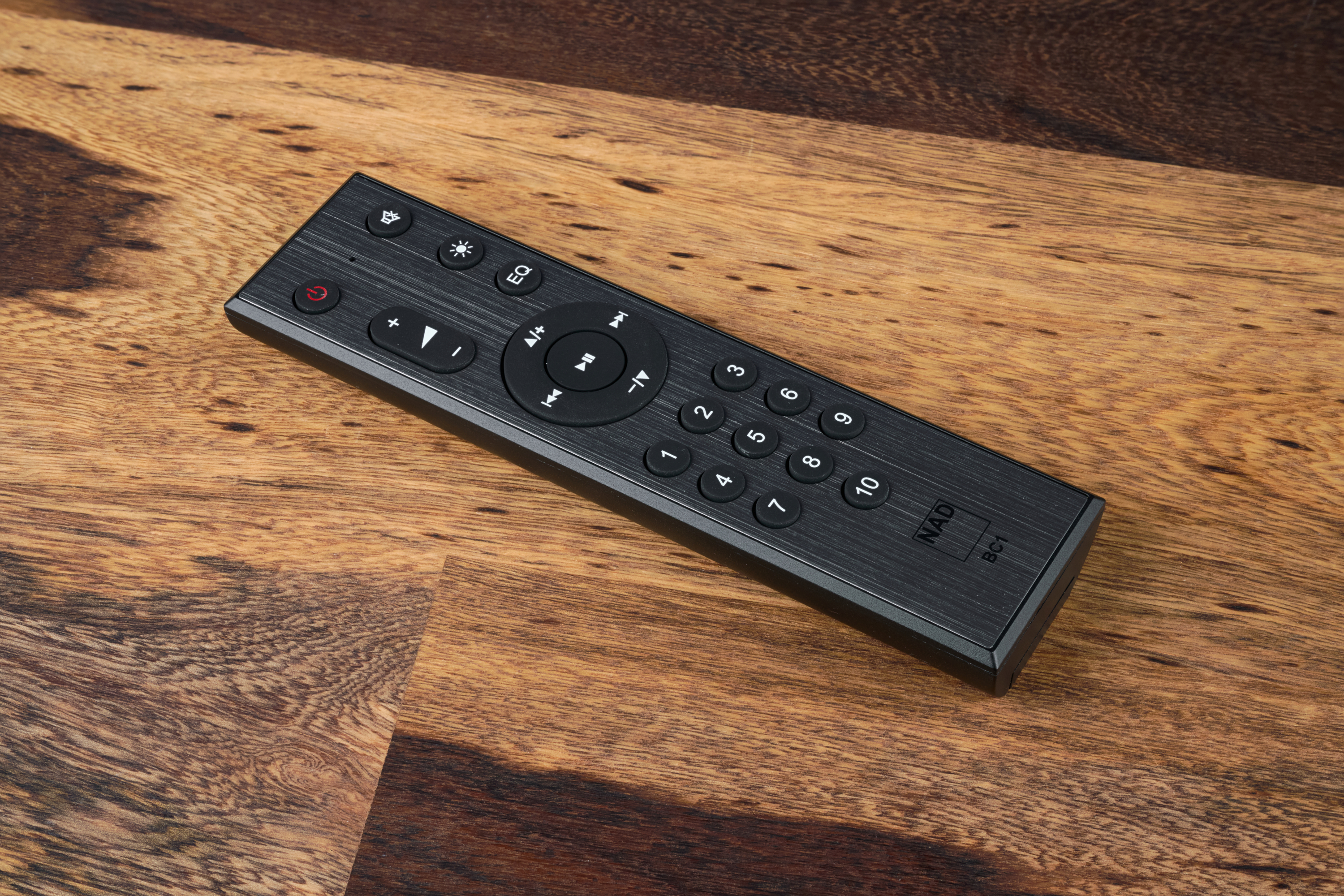 Auch Quellenwahl, Einschlaf-Timer, Klangregelung und bis zu 40 frei belegbare Presets erreichst du auf diesem Weg. Die ersten zehn dieser Presets kannst du auch mit einem einzigen Tastendruck auf der soliden Fernbedienung abrufen: physische Eingänge, Playlisten oder Radiosender – was immer du schnell und unkompliziert im Zugriff haben willst.