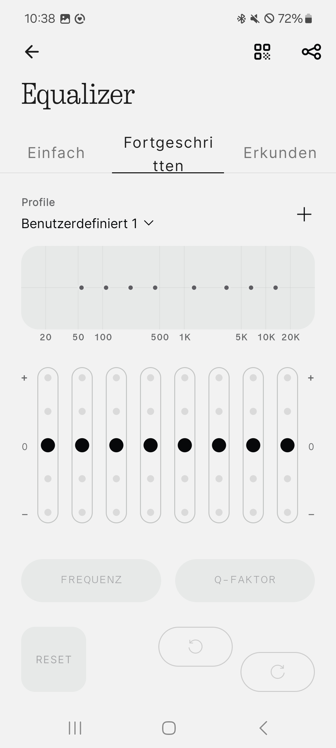 Mehr Funktionen findest du in der „Nothing X“-App, verfügbar für iOS und Android. Hier kannst du unter anderem zwei Equalizer bedienen. Falls du nicht allzu tief einsteigen möchtest, steht ein einfacher grafischer Equalizer mit drei Bändern zur Stelle. Wer im Detail Hand anlegen möchte, freut sich über einen parametrischen EQ mit acht Bändern.