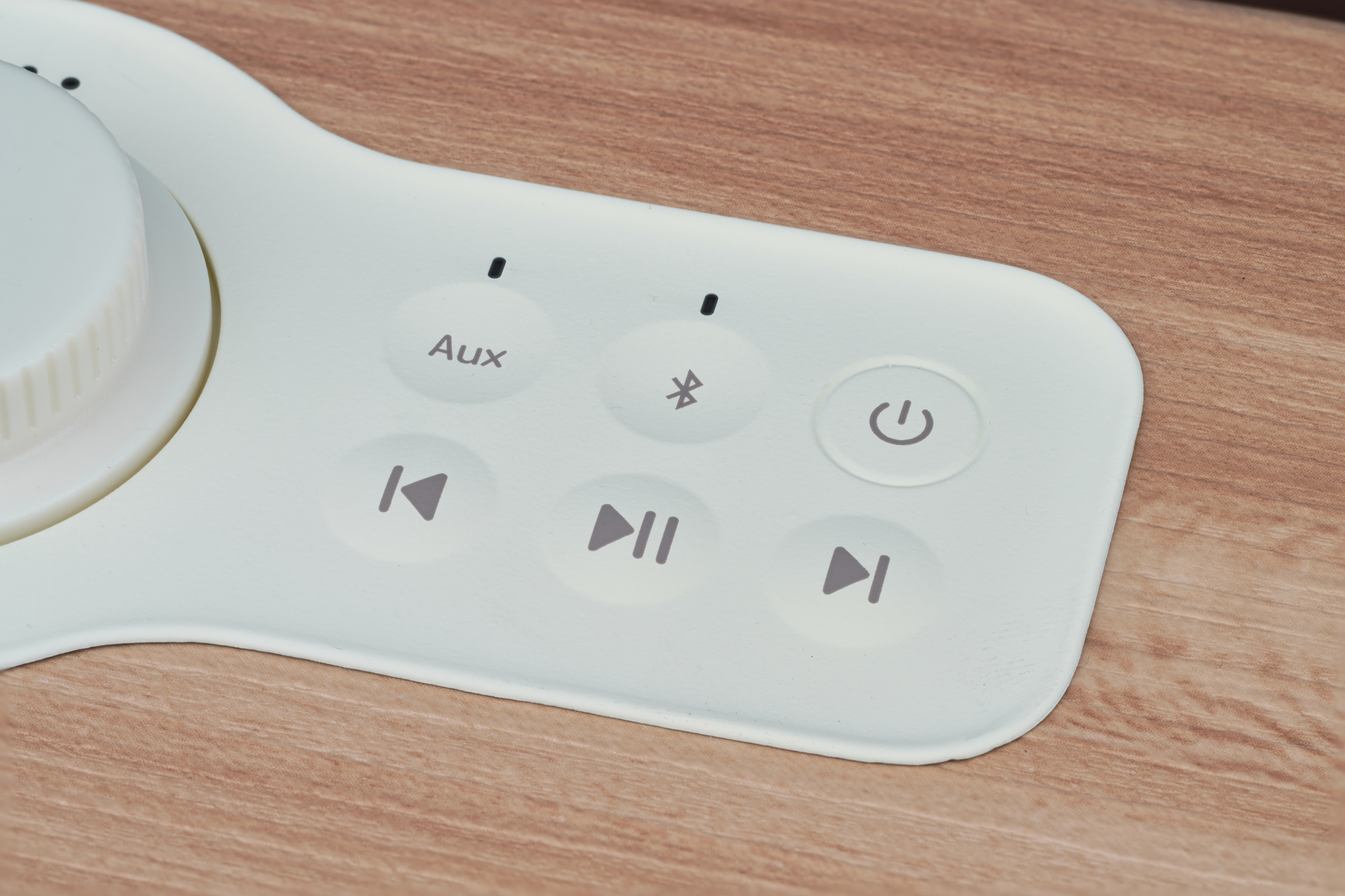 Normalerweise gilt unser Augenmerk nach einem ersten Klangcheck erst einmal der zugehörigen App, in der die meisten Hersteller ihren Equalizer und andere Einstellungen verpacken. Der Pure Classic Aura verzichtet aber komplett auf App-Support und lagert sämtliche Funktionen auf die großzügige Bedienoberfläche aus. Diese befindet sich mitten auf dem Bluetooth-Lautsprecher.
