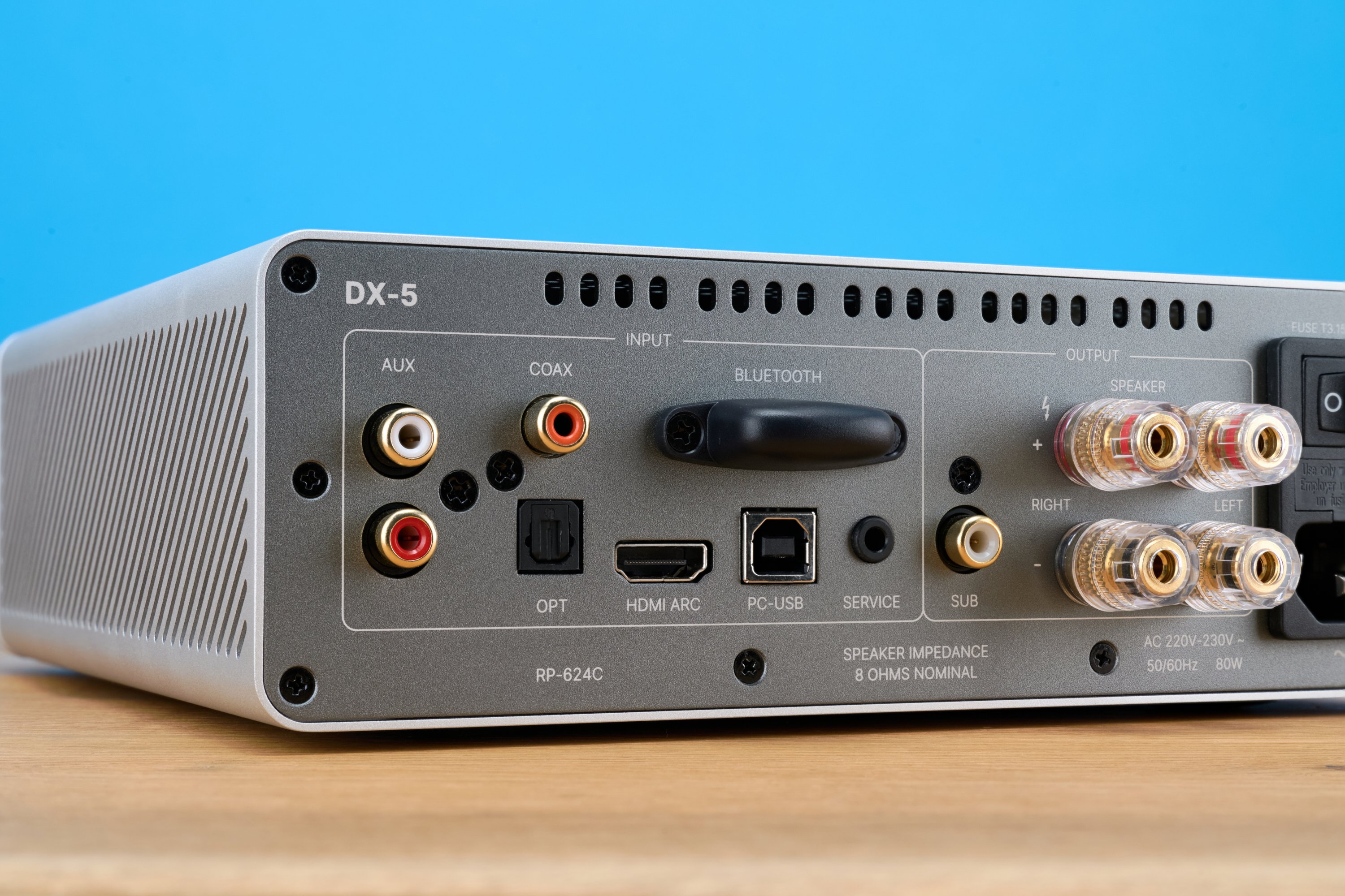 Das aktuelle Quadratformat und das Farbdisplay sprechen dafür, ebenso die Tatsache, dass Hinz und Kunz aktuell kompakte Streamingverstärker baut: Marantz, Denon, Eversolo, Wiim, Argon Audio, NAD … Der DX-5 jedoch ist ein Vollverstärker mit umfangreicher digitaler Ausstattung, aber ohne eigenes Streaming.