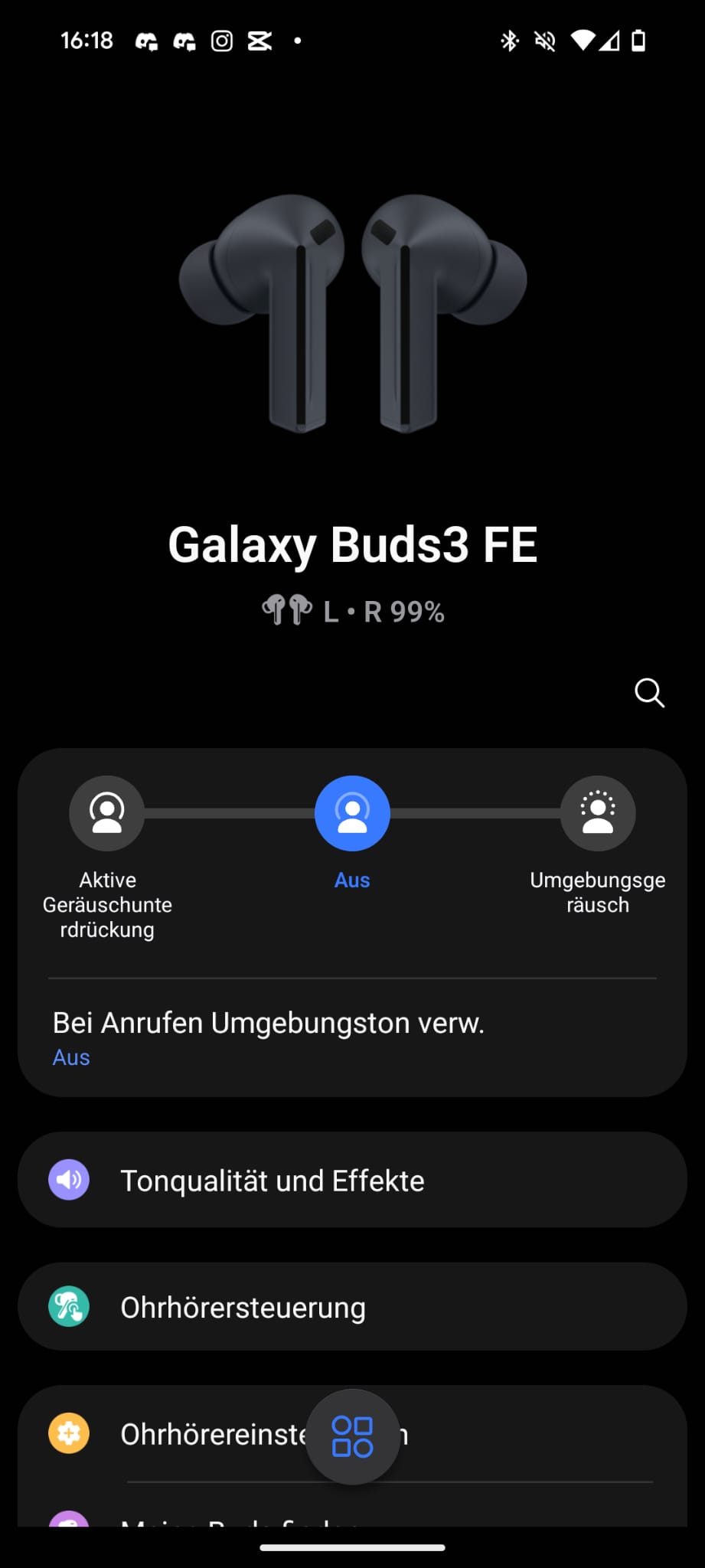 Unsere Aussage von vorhin müssen wir übrigens doch noch etwas relativieren. Samsung hat auch am ANC gespart, der adaptive Modus fehlt beim FE-Modell nämlich. Weil die App aber so viele Einstellungsmöglichkeiten für die Intensität der Geräuschunterdrückung bietet, ist das definitiv verschmerzbar.