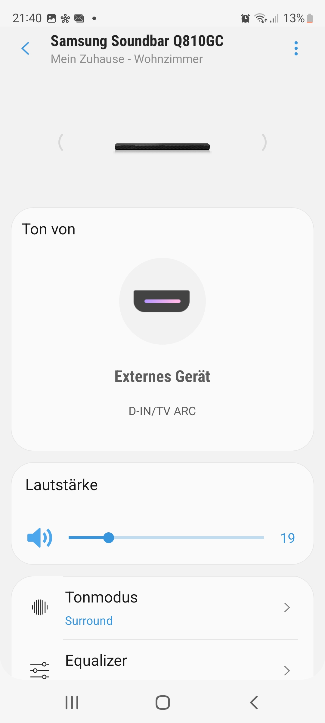 Im Vergleich zu vielen anderen TV-Soundlösungen kannst du die Samsung HW-Q810GC auch ganz ohne App in Betrieb nehmen. Soundbar und Sub verbinden sich nach dem Einschalten automatisch und es kann direkt losgehen. Möchtest du aber auf den vollen Leistungsumfang zurückgreifen, empfiehlt sich klar die Installation über die zugehörige Smart-Things-App von Samsung, die kostenfrei für Android und iOS verfügbar ist.