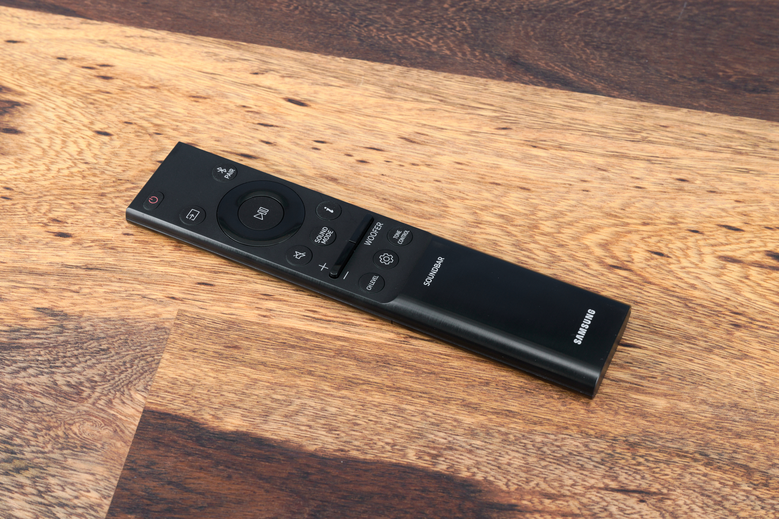 Vieles davon kannst du abseits der App per Fernbedienung einstellen. Die fällt gewohnt handlich aus und bietet alle wichtigen Tasten. Ein Redesign, um zu der Optik der One Remote der Samsung-TVs zu passen, fänden wir aber langsam an der Zeit. Und: Auch wenn sich vieles über die Fernbedienung regeln lässt, das Display an der Soundbar ist schlicht zu eng, um genügend Buchstaben gleichzeitig zu zeigen. Dadurch ist die Bedienung nicht sonderlich komfortabel. Wir greifen da doch lieber auf die App zurück – oder auf Alexa, um etwa ein paar Lieder abzuspielen.