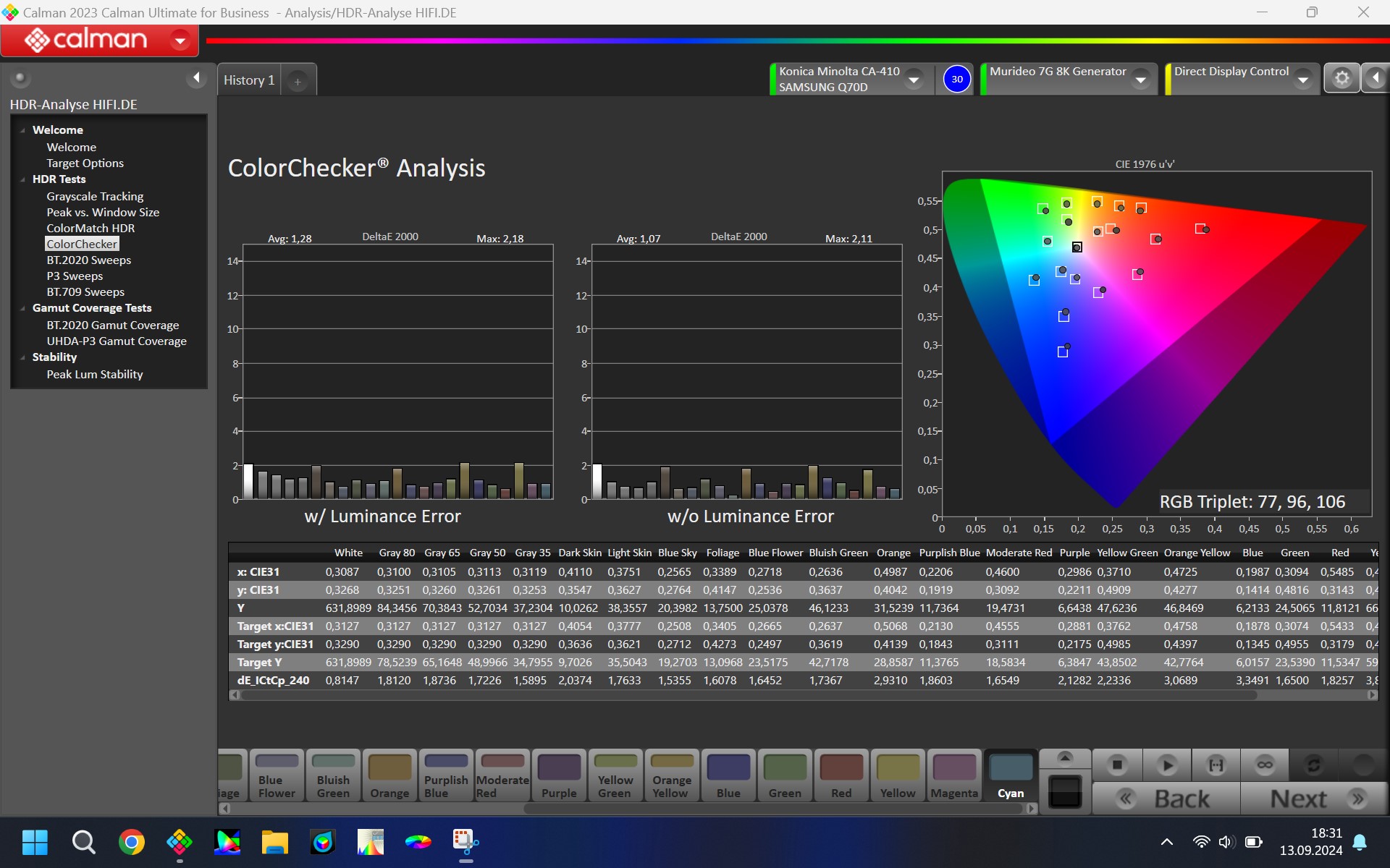 - Durchschnitt dE2000 (SDR): 1,28 (Calman ColorChecker)