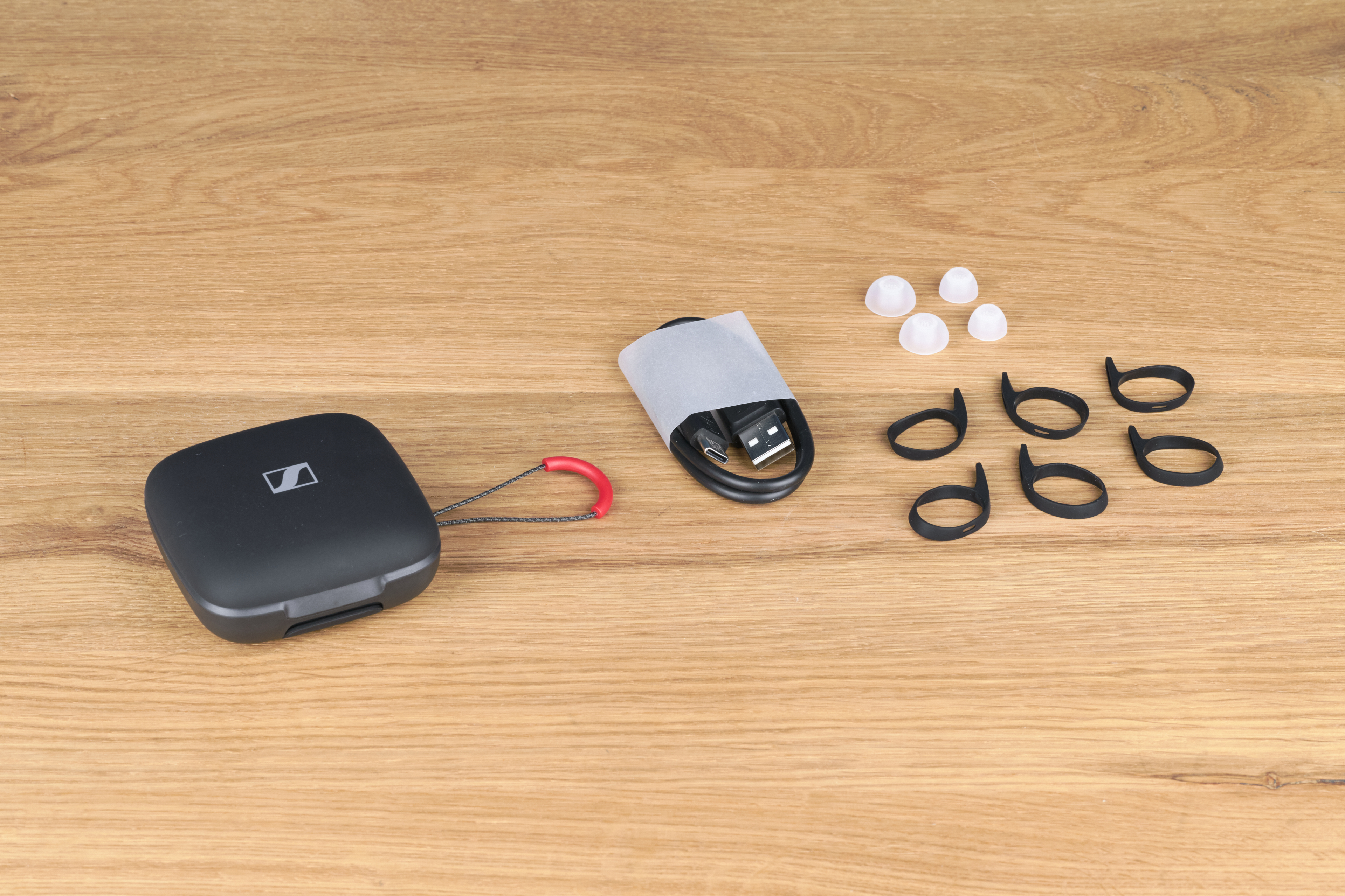 Diese erinnern optisch an die Accentum True Wireless, jedenfalls bis man die Silikon-Finnen anlegt, die für besonders guten Halt sorgen. Dann ist die Optik der Momentum Sport sicher etwas gewöhnungsbedürftig, weil die Finnen in der Ohrmuschel abtauchen sollen, ist das aber halb so schlimm.