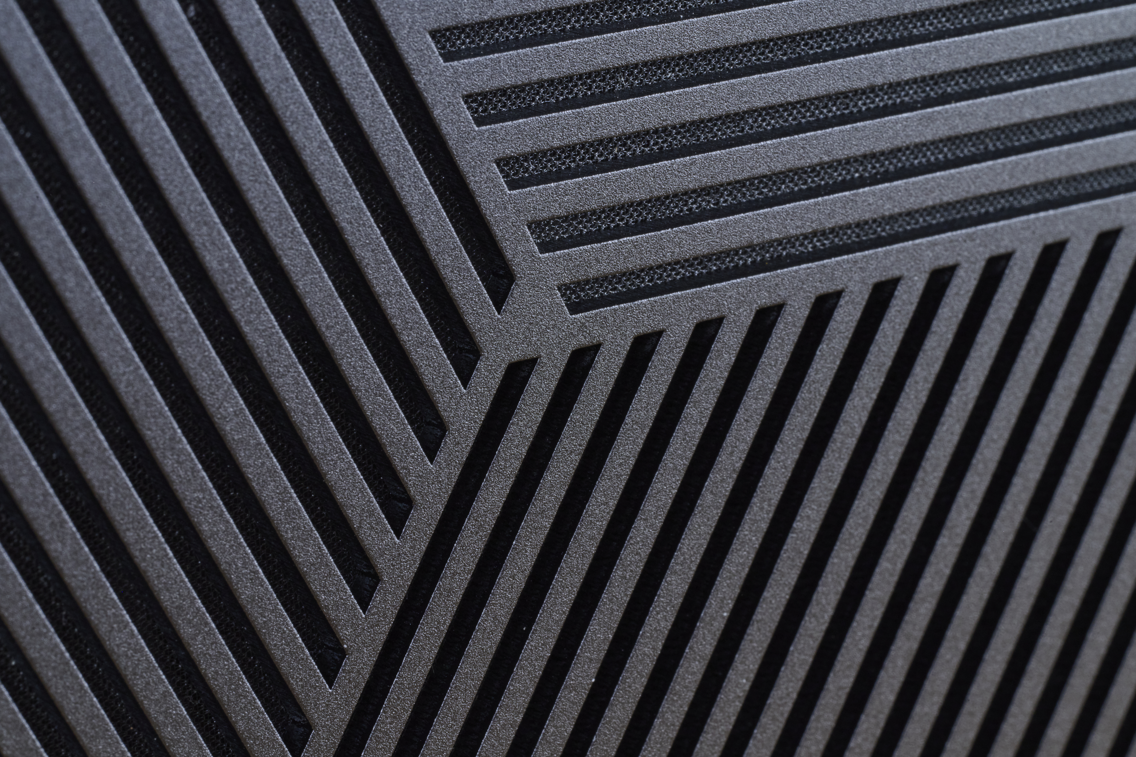 Gegenüber des Tieftöners, am rechten Rand der Unterseite, verstärkt ein Reflexrohr den Bass-Output. Die restlichen Lautsprecher sind da montiert, wo man sie erwartet, nämlich rechts und links außen auf der Frontseite. Wirklich zu sehen bekommst du sie nicht, denn die Front besteht aus einem durchgehenden, sauber lasergeschnittenen Alublech. Beruhigend zu wissen, dass es sich bei dem 20-Millimeter-Kalottenhochtöner und dem 75-Millimeter-Mitteltöner um eine solide HiFi-Bestückung handelt, die im Gehäuse je Kanal eine eigene, abgetrennte Kammer bewohnt.