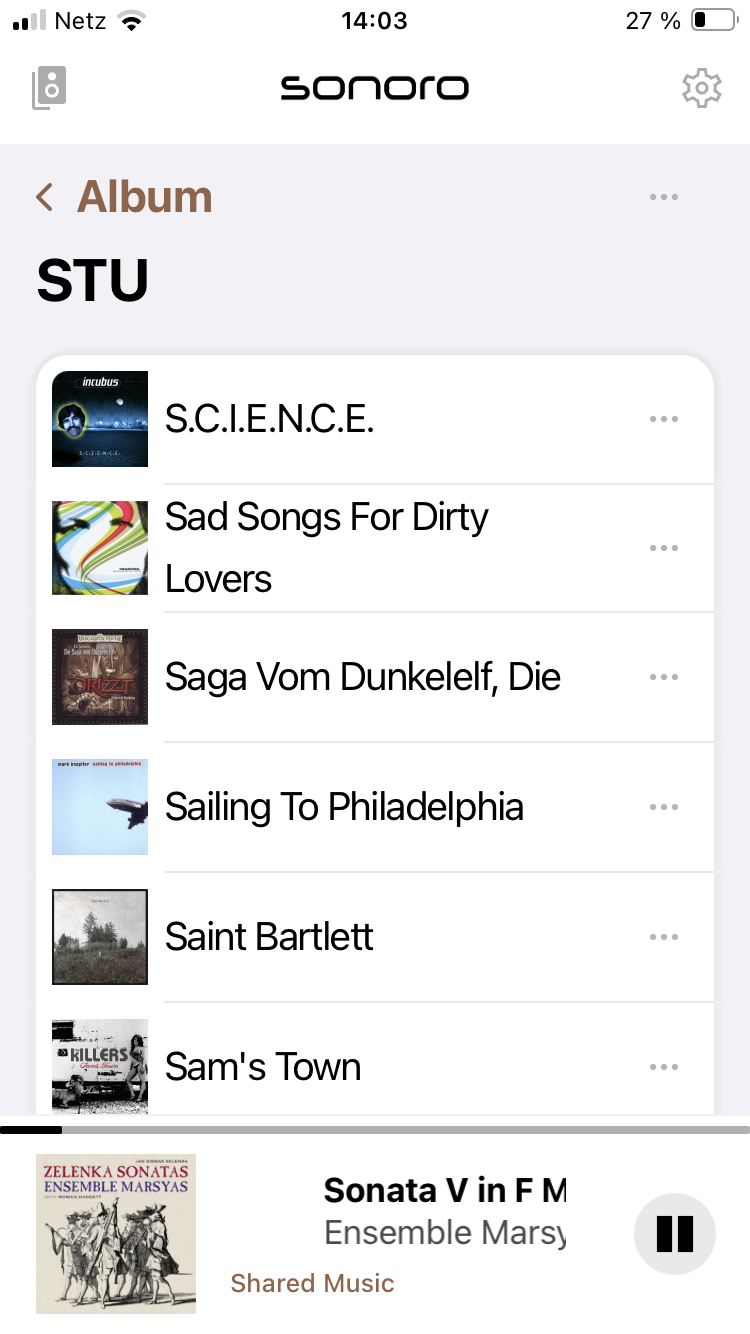 Die neue Sonoro-App ist betont schlicht aufgebaut, verzichtet auf grafische Extravaganz und leider auch auf die reichen Infos und Querverbindungen, wie wir sie etwa von den Sonos- oder Bluesound-Bedienkonzepten kennen. Die Grundfunktionen beherrscht sie aber zuverlässig, auch im fliegenden Wechsel mit der Fernbedienung. Du kannst also zum Beispiel mehrere Alben per App in die Warteschlange laden, deren Wiedergabe dann aber per Infrarot pausieren oder skippen, wie es dir beliebt.