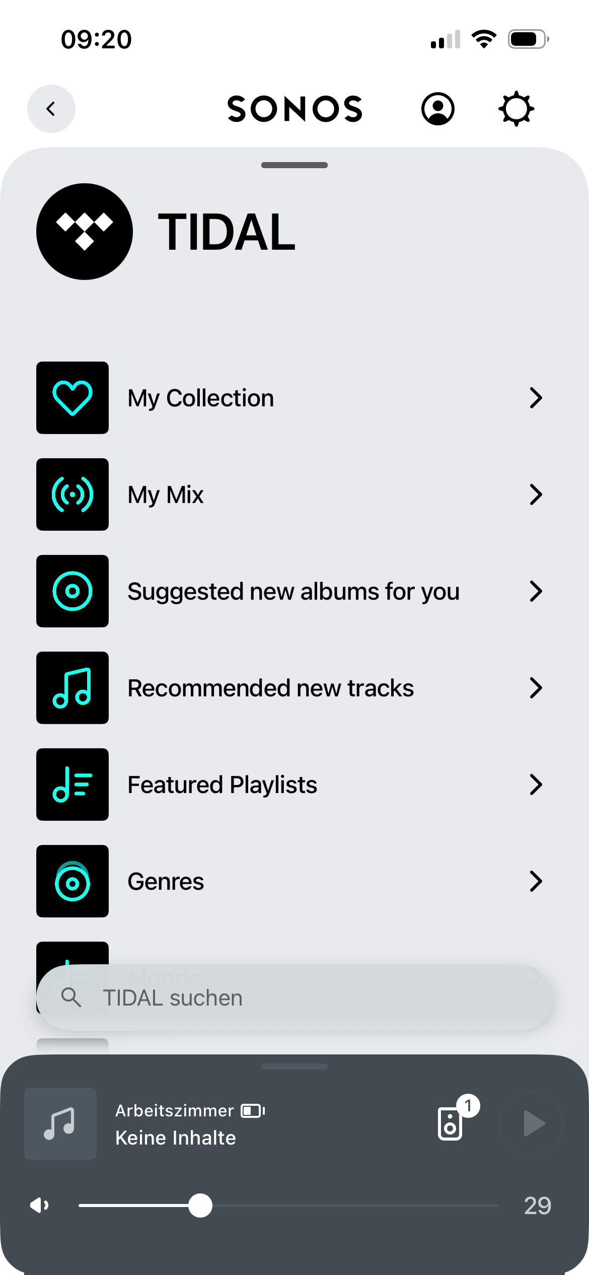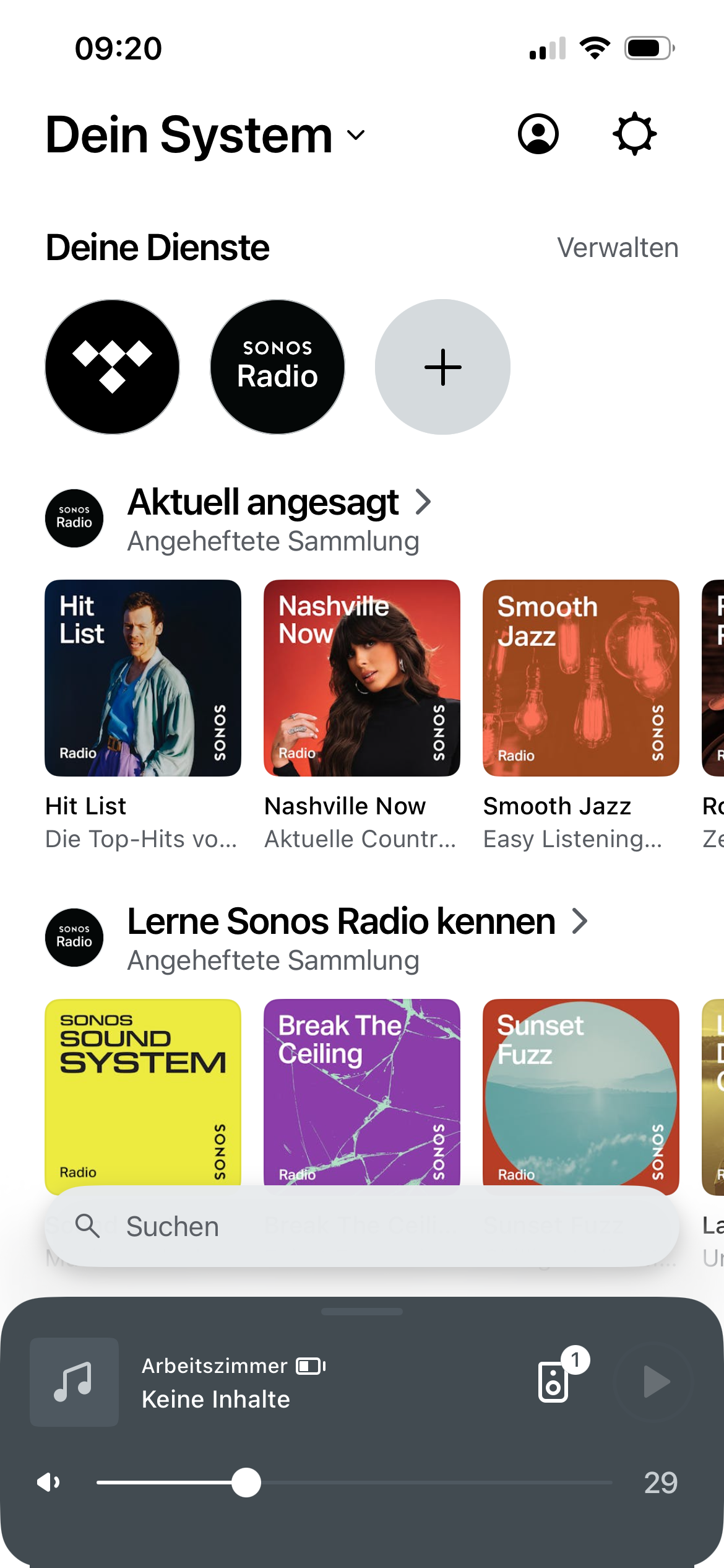 Falls es dir nicht so wichtig ist, die Wiedergabe direkt aus den jeweiligen Apps hinaus auf den Speaker zu lenken, kannst du auch den Weg über die Sonos-App gehen. Dafür musst du dein Konto beim jeweiligen Musik-Streaming-Dienst mit der App verknüpfen. Unterstützt werden etliche Dienste, darunter natürlich auch die Großen: ob Spotify, Tidal, Apple Music oder YouTube Music.