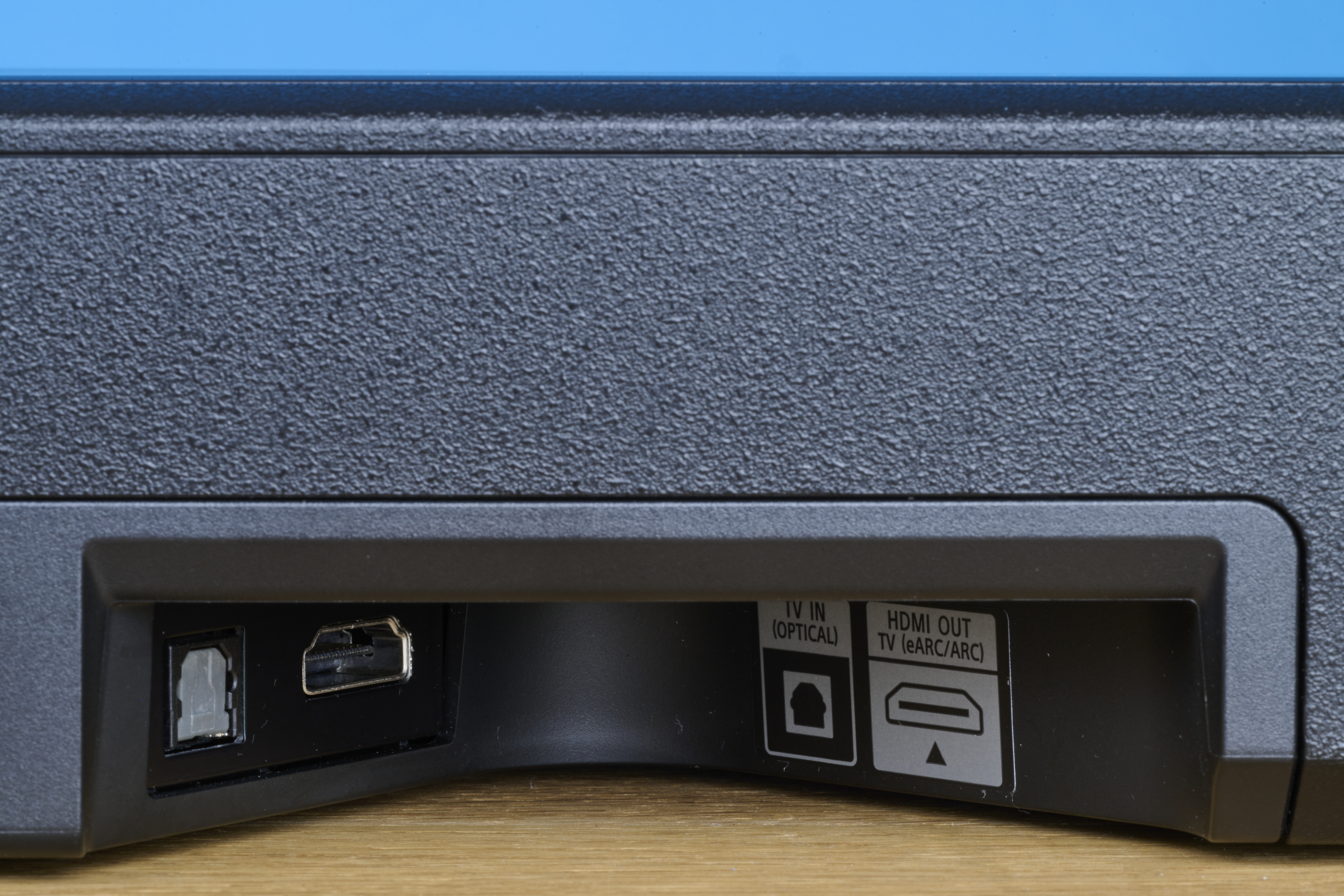 Wenn du kannst, solltest du deinen Fernseher für Streaming und Co. per HDMI verbinden, um eben Dolby Atmos oder DTS:X an die Sony HT-S2000 weiterzureichen. Sonst gibt es nur noch die erwähnte Bluetooth-Verbindung, und das war es schon. Ein USB-Anschluss findet sich zwar ebenfalls auf der Rückseite, der ist aber nur für Service-Anwendungen gedacht.