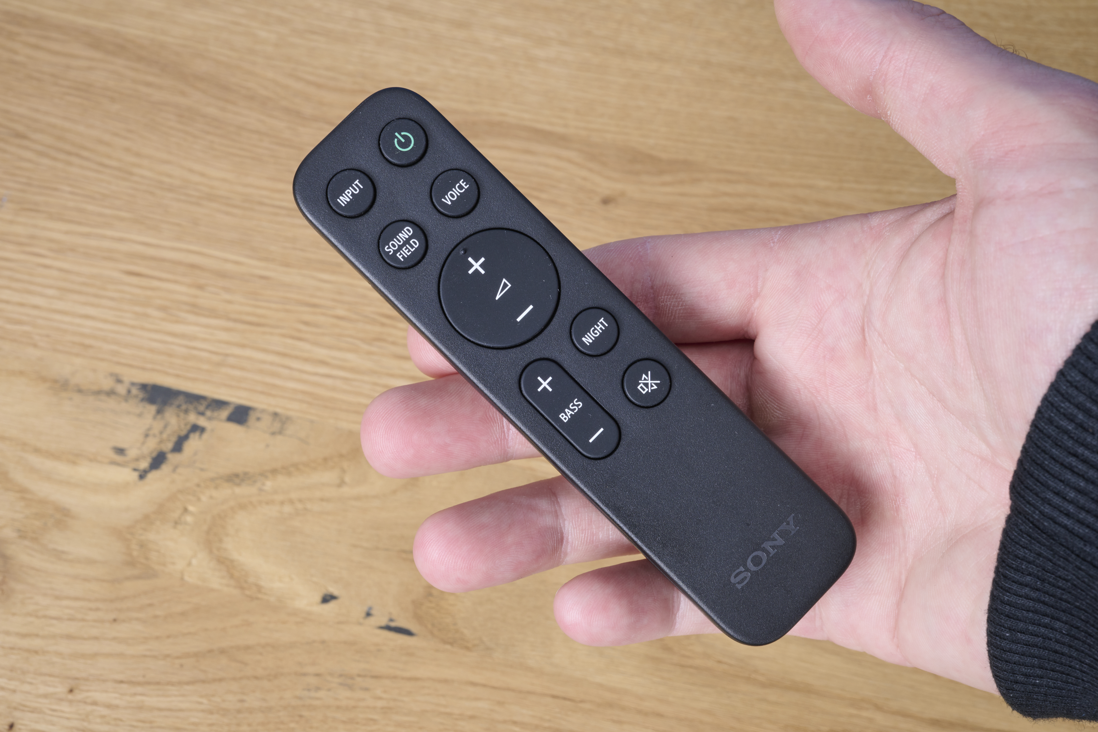 Hast du keine App, kannst du im Endeffekt gut auf die mitgelieferte Fernbedienung zurückgreifen. Die fällt kompakt, aber griffig aus und bietet die wichtigsten Tasten zum Anpassen des Klangs – mit eben den begrenzten Möglichkeiten.
