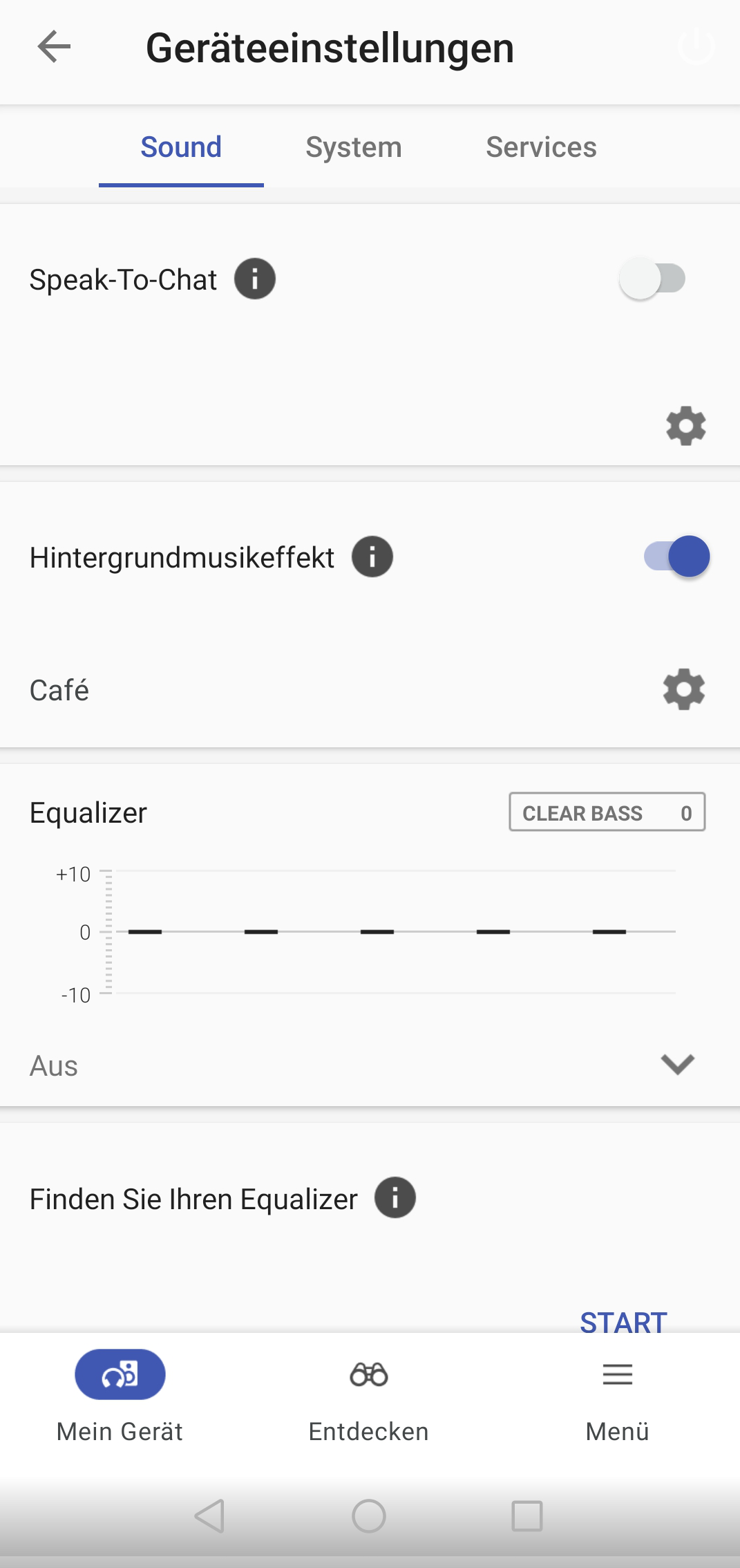 Zur Auswahl stehen hier „Café“, „Wohnzimmer“ und „Mein Zimmer“, womit Sony wohl drei unterschiedliche Raumgrößen suggerieren will. Faktisch büßt der Sound mit „Hintergrundmusikeffekt“ leider einiges an Fülle ein, klingt distanziert und leicht metallisch. Auch Equalizer-Einstellungen werden in diesem Modus nicht unterstützt. Wir hören mit den LinkBuds Open lieber im normalen Modus, oder schalten wirklich einen Bluetooth-Lautsprecher dazu.