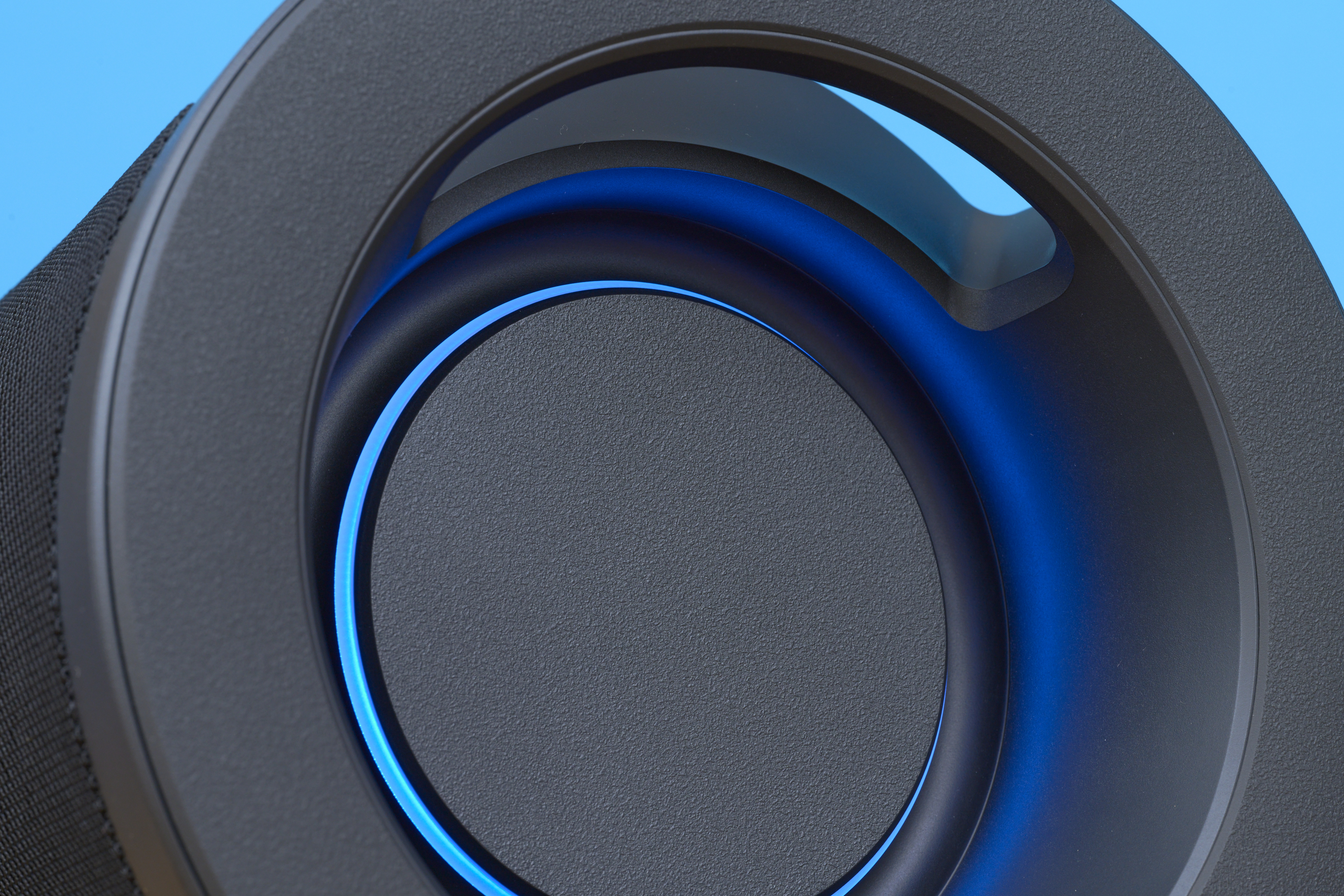 Um die passiven Radiatoren herum sind LED-Ringe verbaut, die als Partybeleuchtung fungieren. Der Effekt fällt angenehm diskret aus und wird dir optisch nicht aufgezwungen. Dennoch finden wird das Design der Konkurrenz etwas gelungener, wenn wir etwa die JBL Boombox 3 betrachtet.