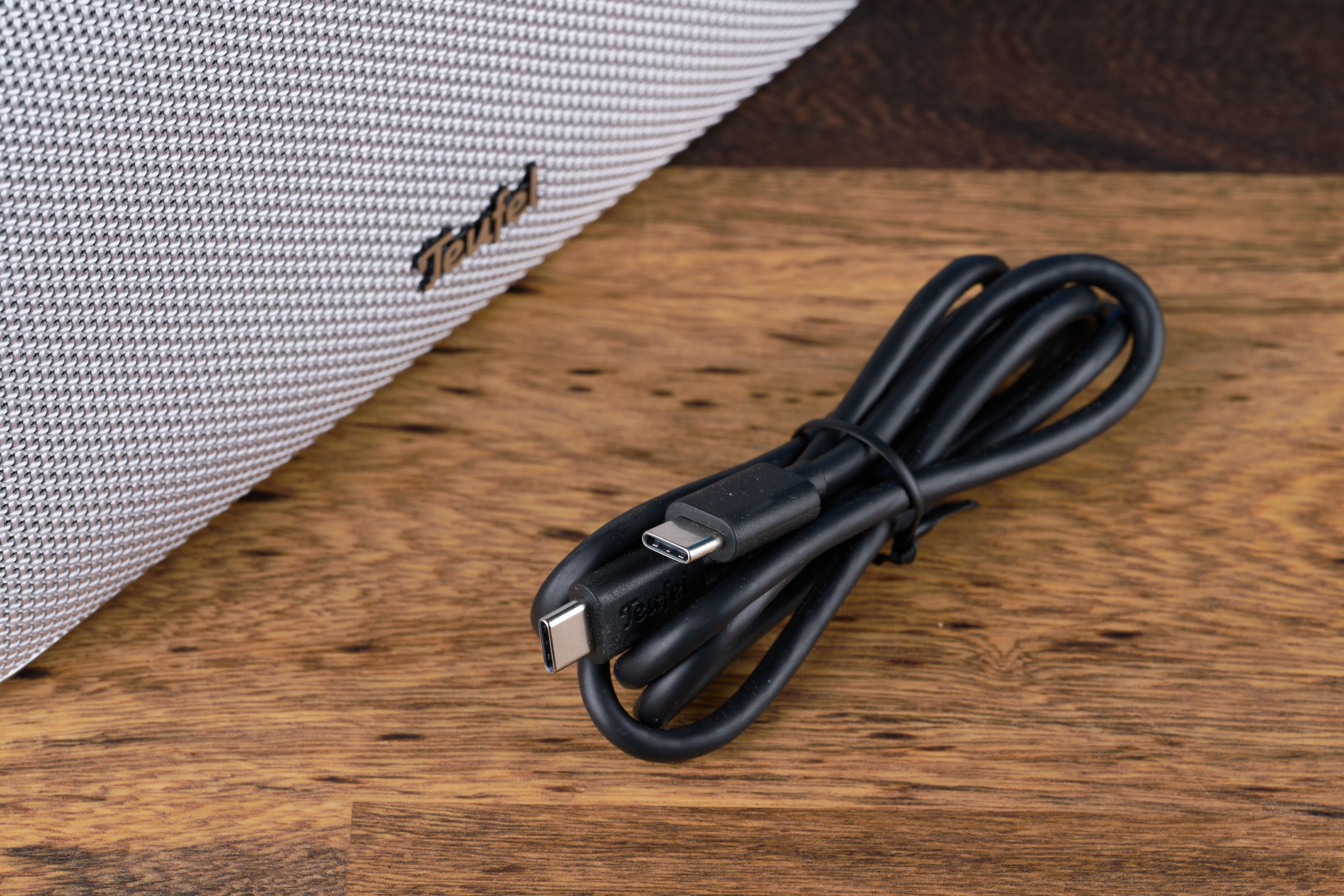 Ansonsten bestätigt der Motiv Go 2 den hochwertigen Eindruck, den schon die erste Generation hinterlassen hat. Makellose Verarbeitung, ein robustes Äußeres und ein edel eingefräster Produktname auf der Unterseite erwecken hier definitiv den Eindruck, ein durchdachtes Premium-Produkt in der Hand zu halten. Angesichts des wirklich kompakten Formats lässt sich auch verschmerzen, dass Teufel hier keine Trageschlaufe oder Ähnliches beilegt. Eine Öse oder Lasche würde das einheitliche Äußere des Motiv Go 2 auch nur unnötig aufbrechen. Allenfalls käme eine Lösung wie beim Sony Ult Field 5 infrage, der die Lasche unter einer Abdeckung versteckt und im Regal unsichtbar macht.
