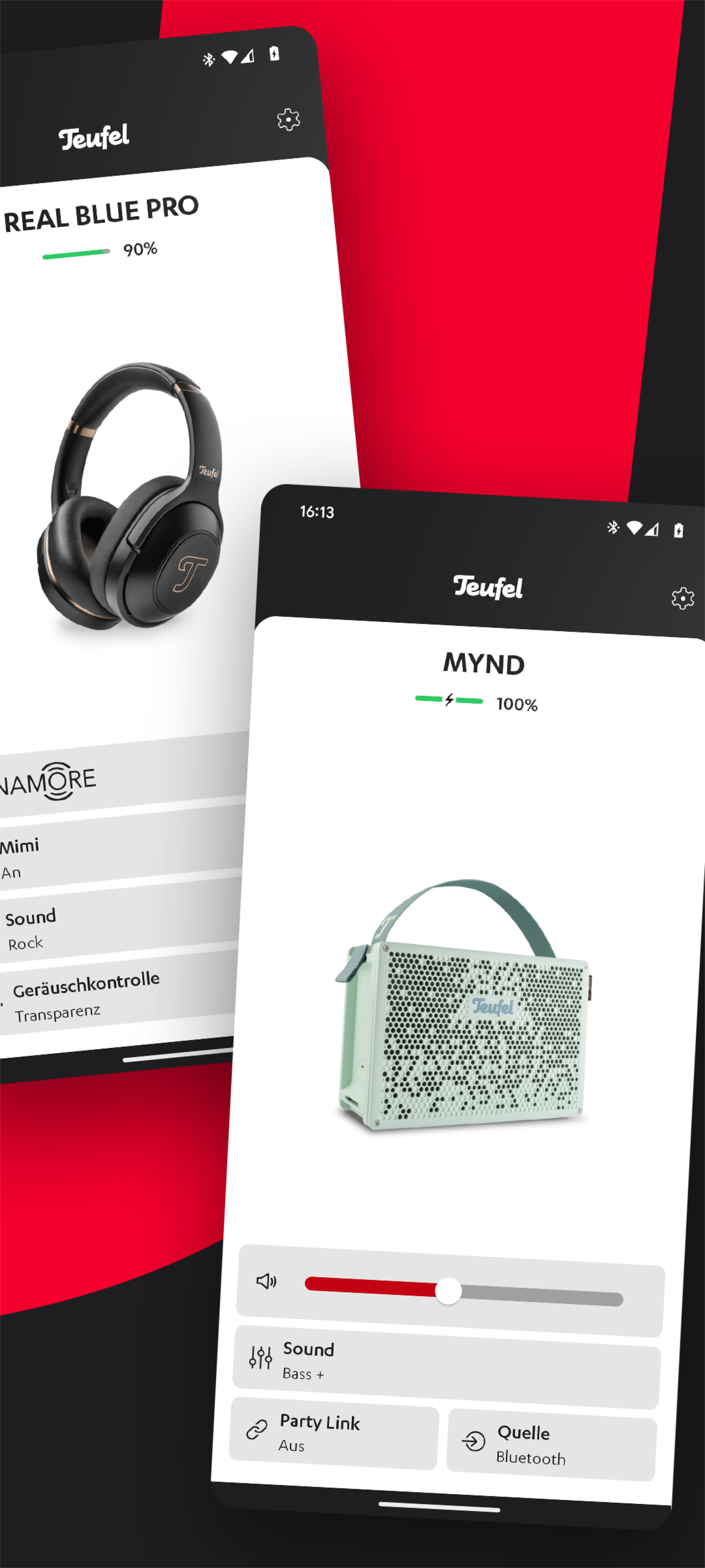 Steuerungs-Apps erlauben feinere Einstellungen als reine Knöpfe am Gerät. Typischerweise beherbergen sie z. B. Equalizer. Teufel hinkte hier in der Vergangenheit oft hinter der Konkurrenz her. Viele Bluetooth-Lautsprecher, wie der Boomster, hatten gar keine Steuerungs-Apps. Die neuesten Produkte der Firma finden jetzt allerdings Unterstützung in Form der „Teufel Go“-App. So in Zukunft auch der Teufel Rockster Neo.