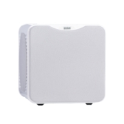Es gibt kompakte Subwoofer und dann gibt es den MicroVee X von Velodyne Acoustics. Der kleine Metallwürfel kommt recht unscheinbar daher und findet in wirklich jedem Wohnzimmer Platz. Doch hat es dieser Subwoofer faustdick hinter den Ohren und spielt locker weit größere Subwoofer an die Wand. Eines seiner Geheimrezepte: gleich zwei passive Radialstrahler an den Seiten. So kann er seinem Bass besonderen Nachdruck verleihen, was ihn zum idealen Begleiter bei Kinofilmen macht. Für Musik fehlt ihm hingegen teilweise der letzte Schliff und das letzte bisschen rhythmisches Feingefühl. Wenn es nur um eine bestmögliche Musikwiedergabe geht, können das andere Subwoofer wie der Deep Blue 8 aus dem gleichen Hause oder der KEF KC62 einfach etwas besser.